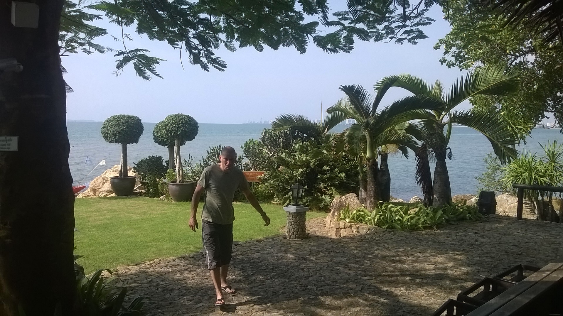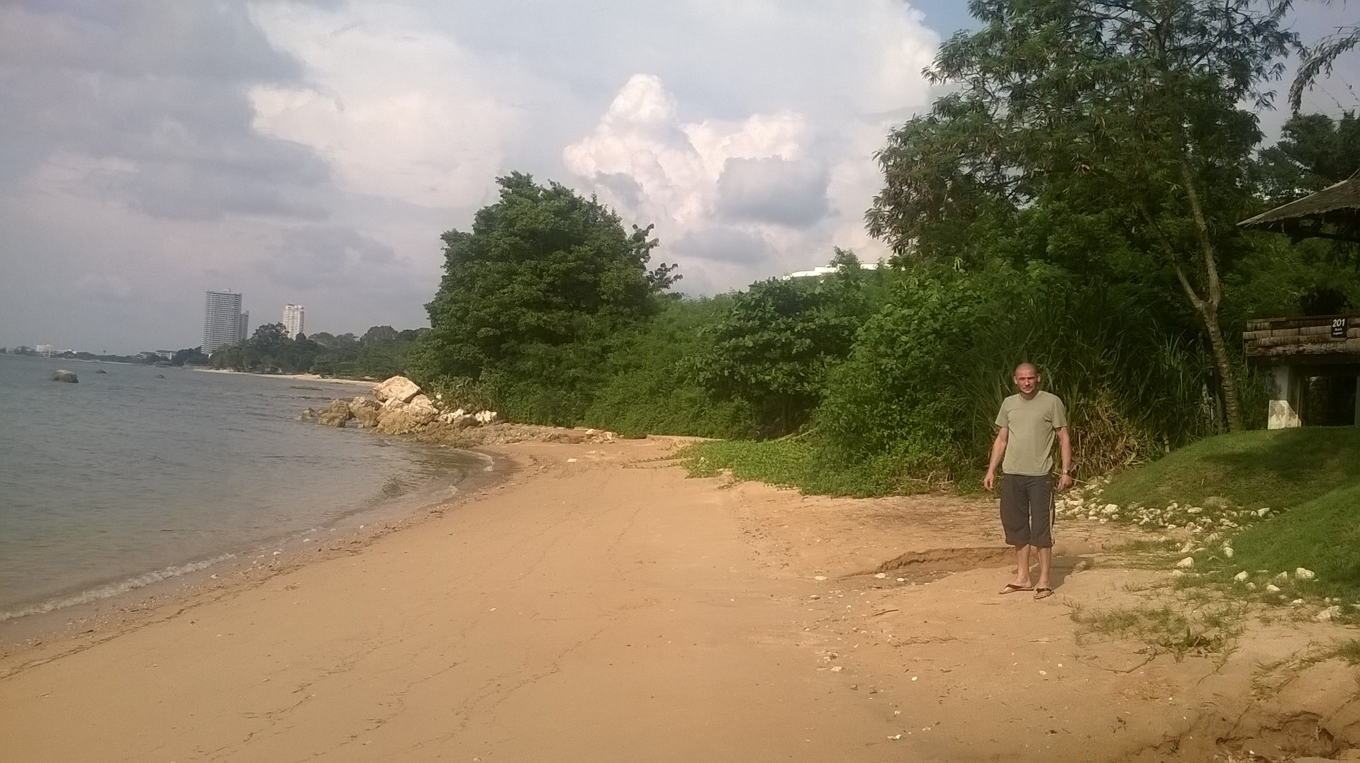 An unserem letzten Tag in Bang Sa-Re waren wir mal weniger faul und starteten bereits um 9:15 zum Frühstück beim Belgier (wie die Lokalität genau heißt, entzieht sich meiner Kenntnis). Da das Wetter recht viel versprechend aussah, ging es dann zum Strand von Sai Keow, zu dem man durch eine Navy-Kaserne fahren muss.