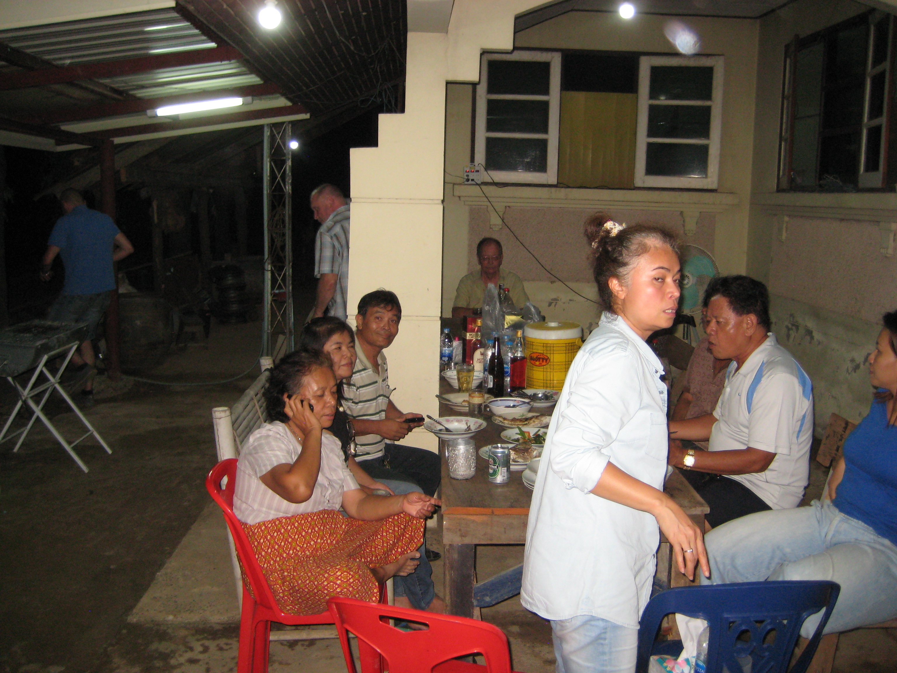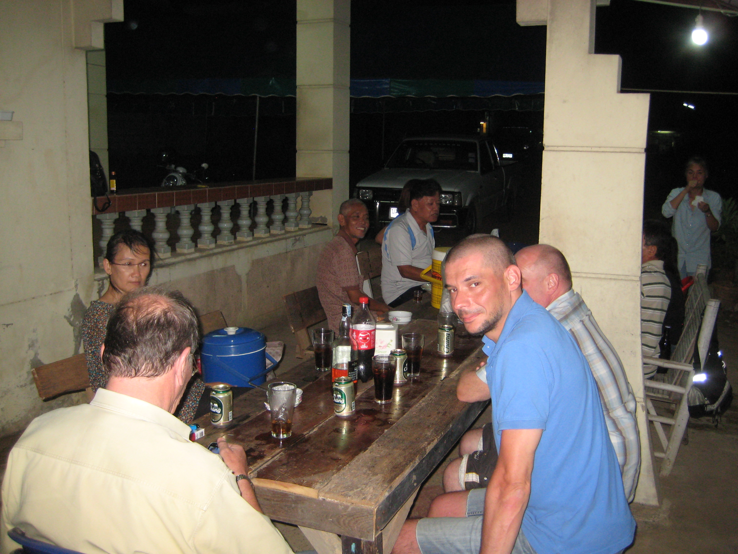 Während Pha noch für die Party einkaufen war, haben wir (Werner, Sai, Manni, Peter und Olli) an der Poolbar noch etwas Bier getrunken. Danach hat Pi Duis Tochter uns mit dem Pickup wieder abgeholt zum Abendessen. Diesmal waren wir mit Werner gleich 4 Falang auf der Ladefläche.